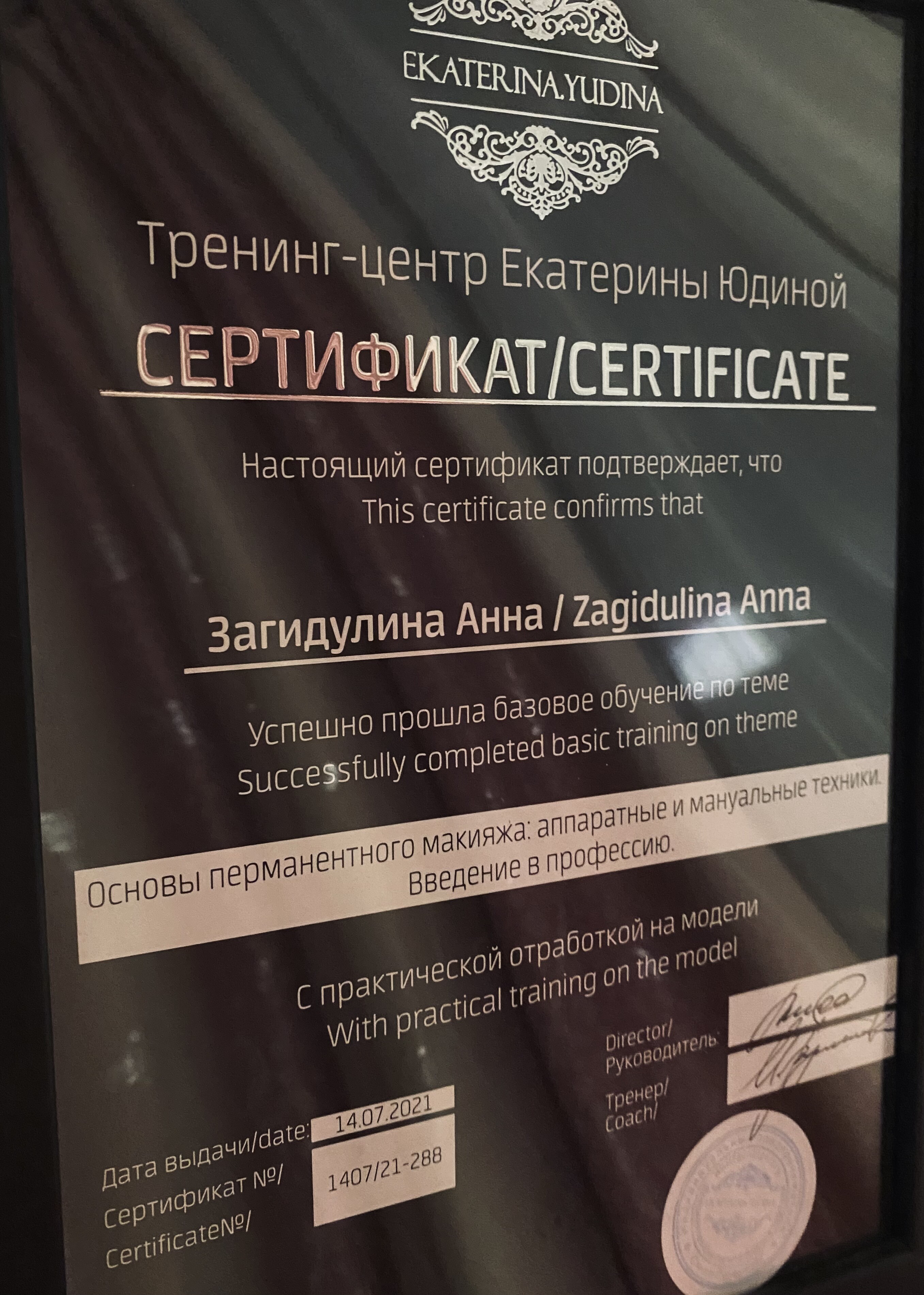 Обучалась в студии Екатерины Юдиной, повышаю квалификацию на онлайн тренингах.