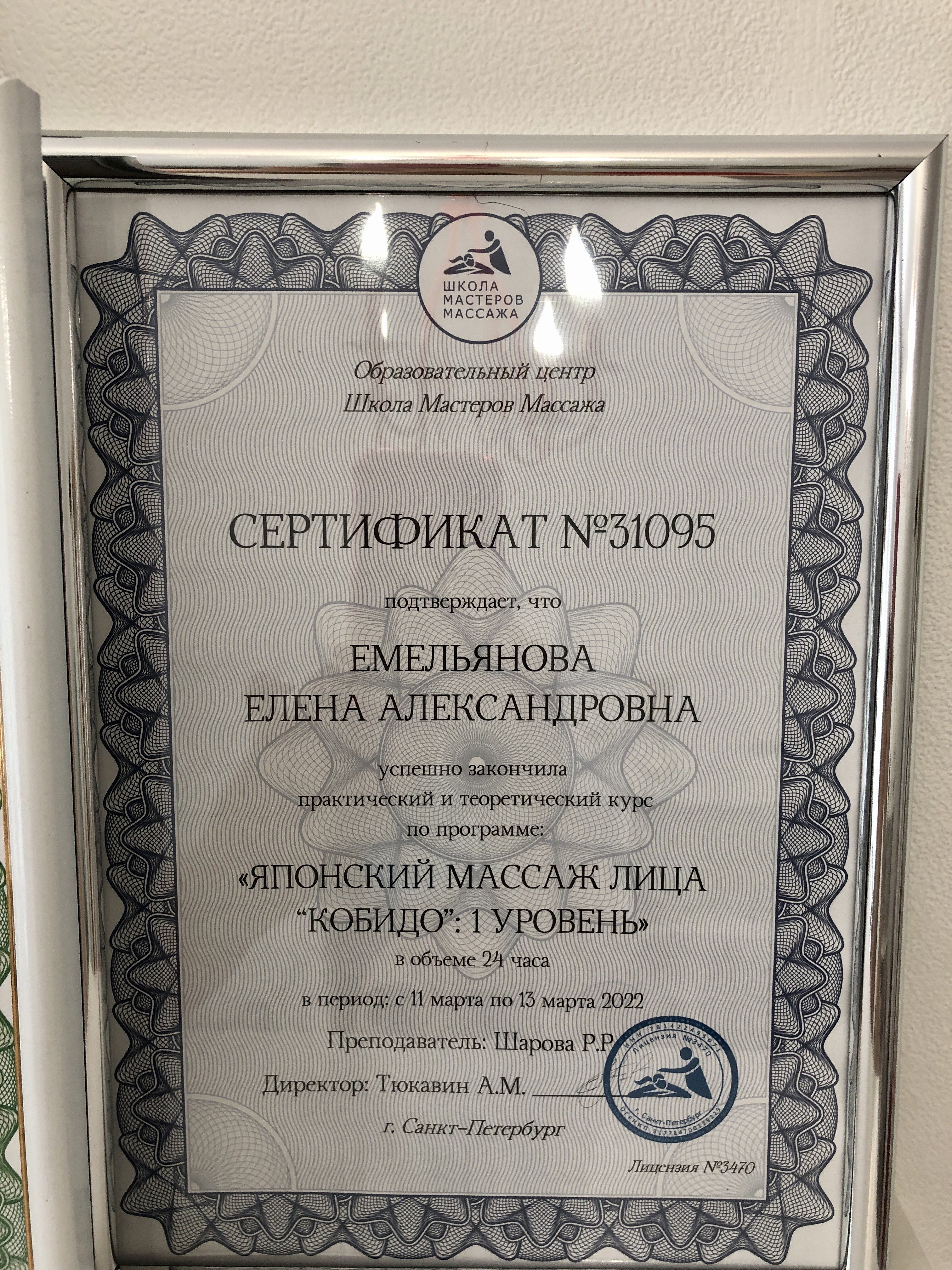 Меня зовут Елена, я сертифицированный специалист по эстетическому массажу лица Кобидо. Регулярно повышаю навыки. Имею медицинское образование и образование в эстетической косметологии. Принимаю в светлом и уютном кабинете, пользуюсь исключительно высококачественными и дезинфицированными инструментами, поэтому ваше здоровье в надежных руках!