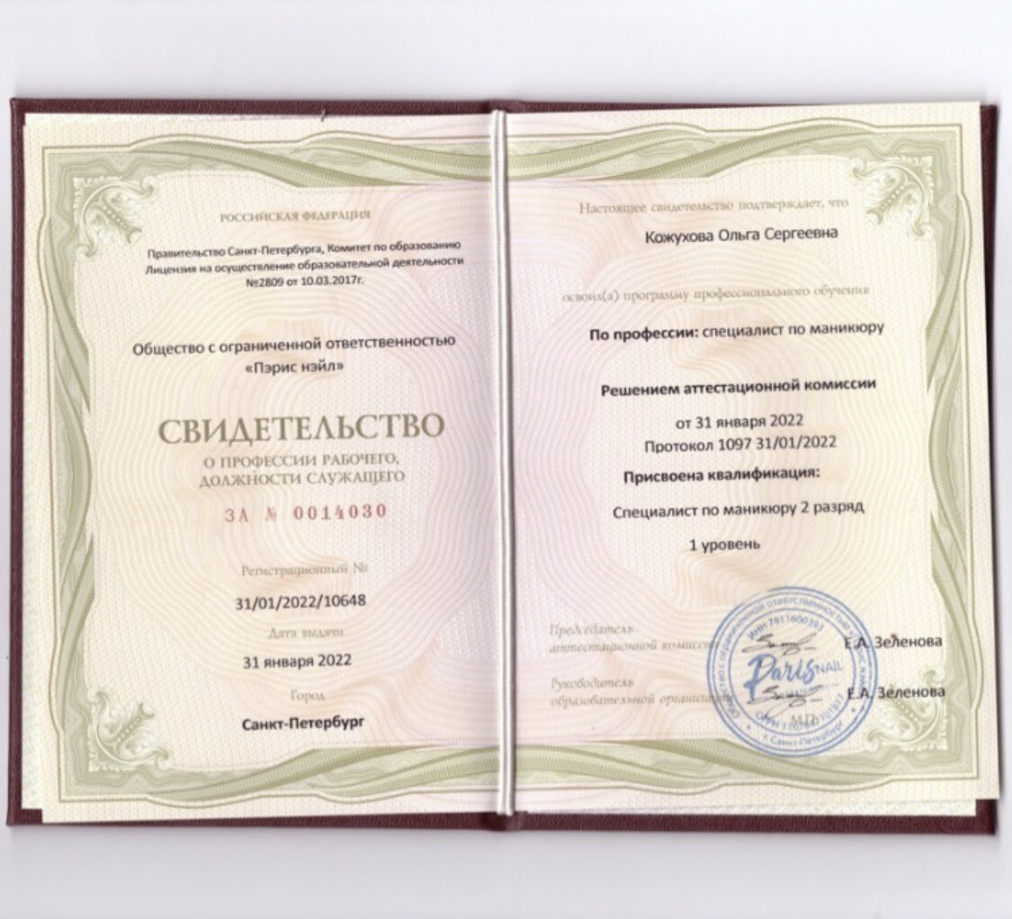 Ольга - великолепный мастер своего дела! Учтет все пожелания клиента, при этом выполнив работу качественно и аккуратно. Кроме того, процесс сопровождают приятные бонусы в виде фильмов, музыки и чая с вкусняшками! Хожу к Оле со своего первого маникюра, и рекомендую всем! Ногти всегда держатся от 3х недель и дольше, если их не травмировать самостоятельно! Она - the best of the best😁